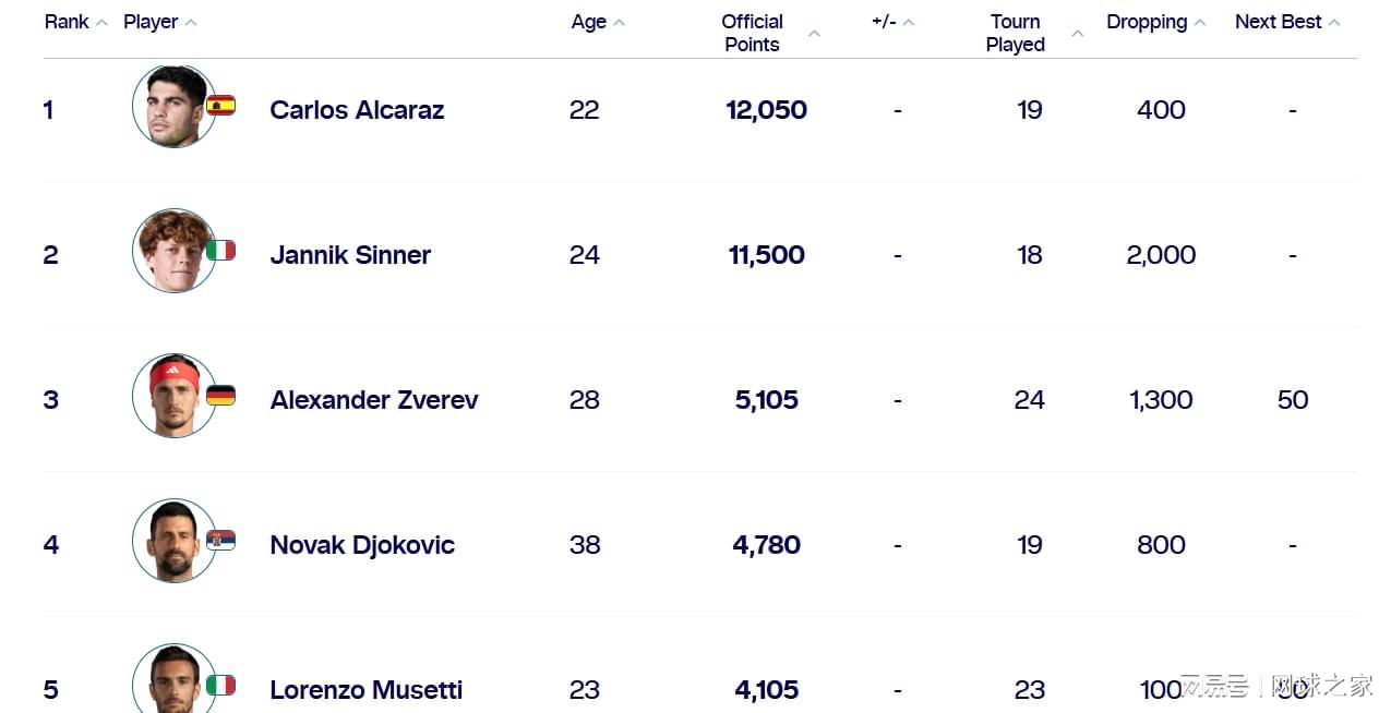 也就是说,领跑网坛的辛卡二人与其他球员之间,已经出现了明显的断层。其他球员并非在贴身追赶辛卡二人,而是被拉开了明显的差距。